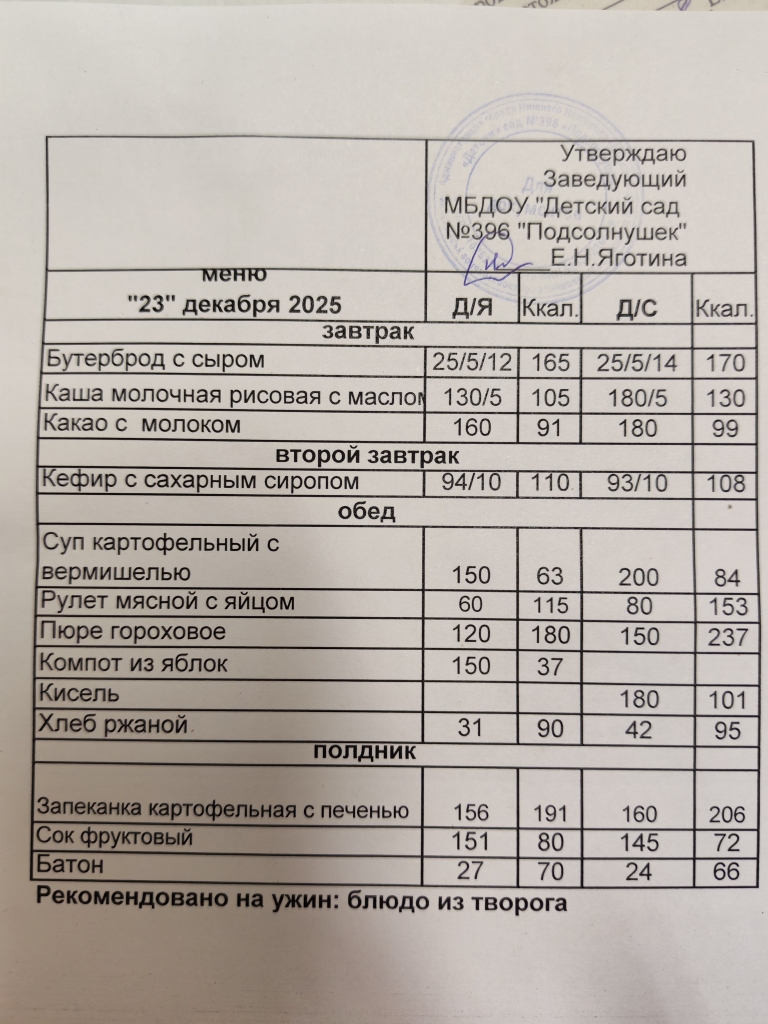 Ежедневное меню 22.12 23.12 24.12 25.12 26.12