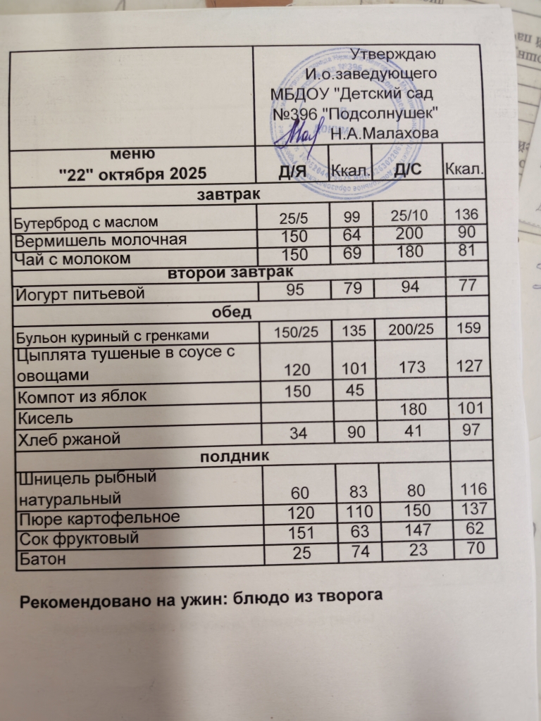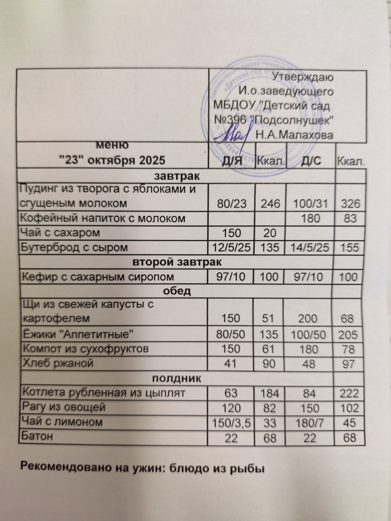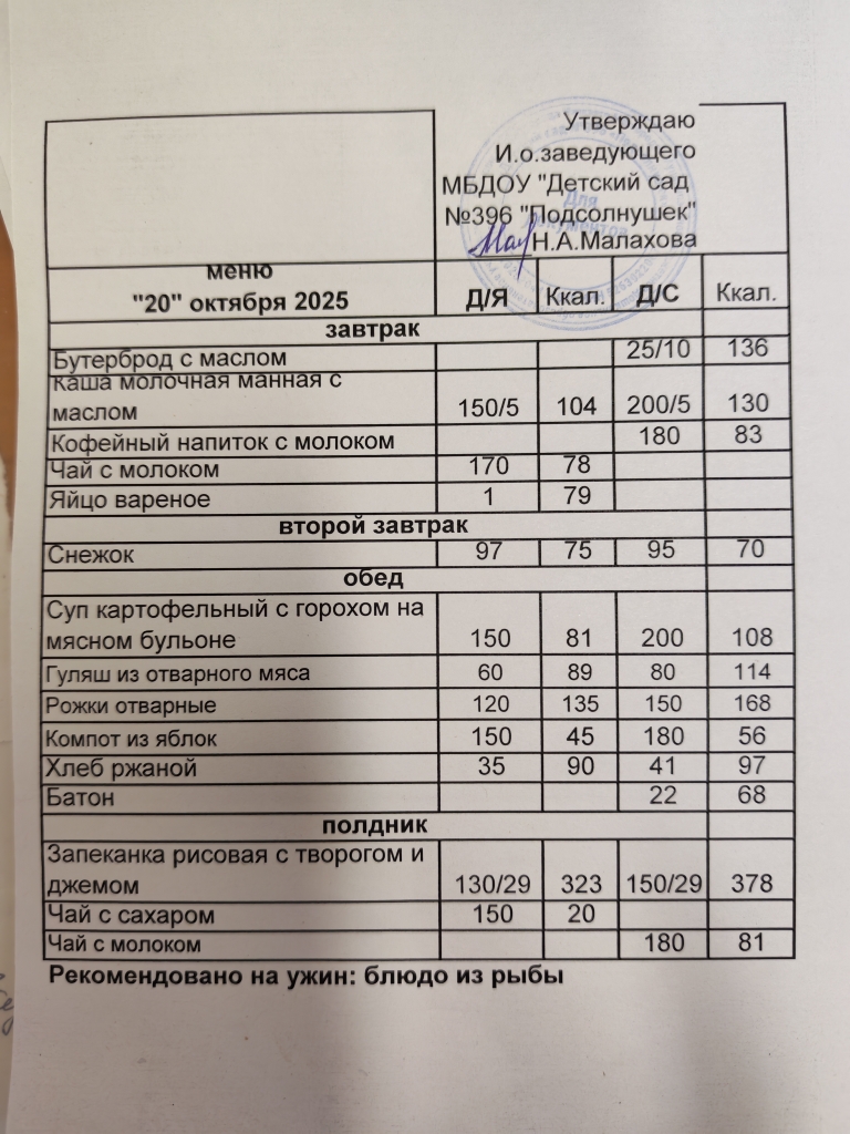 Ежедневное меню 20.10 21.10 22.10 23.10 24.10